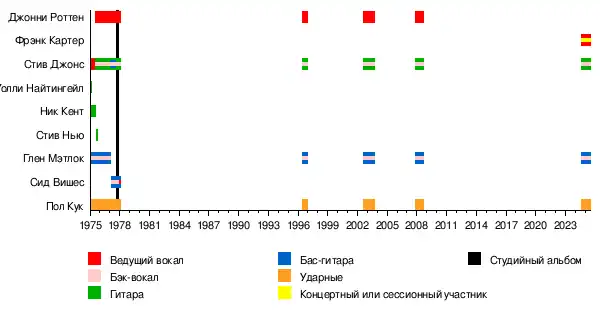 - ↑ Sid Vicious- timeline (брит. англ.). NME (20 июня 2024). Дата обращения: 13 апреля 2025.