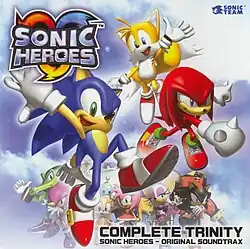 Всего вышло четыре саундтрека к игре. Первый музыкальный альбом под названием Triple Threat Sonic Heroes Vocal Trax (яп. ソニックヒーローズ トリプル・スレット ヴォーカル・トラックス Соникку Хи:ро:дзу Торипуру Сурэтто Вока:ру Тораккусу) вышел 4 февраля 2004 года. В него вошли все шесть вокальных композиций звучащих в игре, а в качестве бонуса присутствуют ещё шесть песен из игры Sonic Adventure[40]. Второй альбом Complete Trinity: Sonic Heroes — Original Soundtrax (яп. ソニックヒーローズ コンプリート・トリニティ オリジナル・サウンドトラック Соникку Хи:ро:дзу Компури:то Торинити Оридзинару Саундоторакку) вышел на двух дисках, и был издан 3 марта 2004 года[39]. Хотя здесь есть музыка из уровней, но в саундтреке отсутствуют музыкальные темы команд. Лейбл Geneon Entertainment издавал в США третий альбом Sonic Heroes Official Soundtrack, релиз которого состоялся 9 ноября 2004 года. В него вошли 30 композиций, являющиеся как музыкальными темами команд, так и музыкой из уровней[42]. В 2011 году он был переиздан под названием Sonic Heroes Original Soundtrack 20th Anniversary Edition[43]. Помимо саундтреков к игре, композиции «Sonic Heroes» и «What I'm Made Of...» вошли в альбом True Blue: The Best of Sonic the Hedgehog (2008)[44], а «This Machine» — во вторую его часть, под названием True Colors: The Best of Sonic the Hedgehog Part 2 (2009)[45]. Мелодия уровня «Seaside Hill» была включена в History of the 1ST Stage Original Soundtrack Blue Edition, распространяемый в 2011 году в Японии для предзаказавших Nintendo 3DS-версию игры Sonic Generations[46], а треки «Sonic Heroes», «Rail Canyon» и «We Can» присутствовали в альбоме 2016 года Sonic the Hedgehog 25th Anniversary Selection[47].