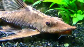 Это донная рыба. Предпочитает водоёмы с чистой водой, насыщенной кислородом. Встречается в быстротекущих небольших реках с каменистым дном. Днем лежит на удлинённых корнях, активна в сумерках. Питается преимущественно водорослевыми обрастаниями, которые соскребает с листьев растений и плоских камней.