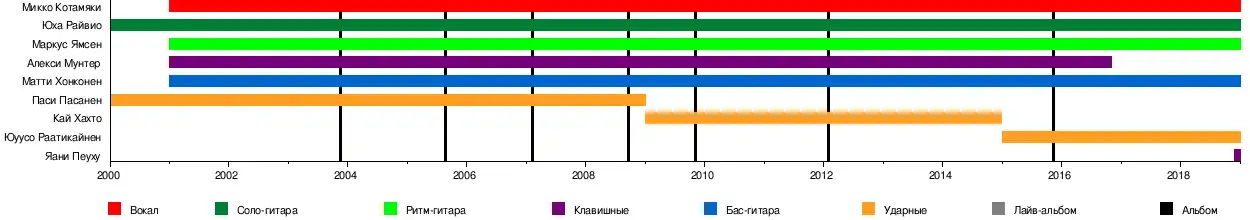 - Матти Хонконен (Matti Honkonen) — бас-гитара (2001-настоящее время)