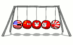 Наиболее распространённым культурным сценарием изображения Швейцарии в польских мемах, включая и мем Countryballs, является нейтралитет Швейцарии, её неучастие в боевых действиях и получение прибыли во время Первой и Второй мировых войн[1]. В одном из комиксов Countryballs изображаются четыре страны, которые находятся в состоянии войны — Советский Союз воюет против Нацистской Германии, а США воюет против Японской империи. Швейцария же спокойно отвлекается на цветок[2].