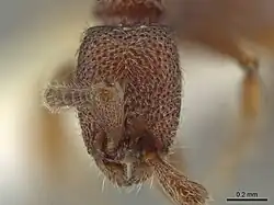 Мелкие муравьи красно-коричневого цвета (длина около 3 мм). Ширина головы рабочих 0,52—0,59 мм, длина головы 0,63—0,71 мм. Отличаются следующими признаками: субпетиолярный отросток треугольный; абдоминальный сегмент AIII сверху сверху трапециевидный, бока умеренно выпуклые; AIV сверху с выпуклыми сторонами, передний край не усеченный; у AIII и AIV дорсальный профиль выпуклый; отстоящие волоски длинные. Стебелёк двухчлениковый, но явные перетяжки между следующими абдоминальными сегментами отсутствуют. Проното-мезоплевральный шов развит. Оцеллии отсутствуют, сложные глаза редуцированные. Нижнечелюстные щупики рабочих 2-члениковые, нижнегубные щупики состоят из 2 сегментов. Средние и задние голени с одной гребенчатой шпорой. Обнаружены в подстилочном лесном слое. Вид был впервые описан в 2021 году американским мирмекологом Джоном Лонгино и немецким энтомологом Майклом Бранстеттером[1][2].