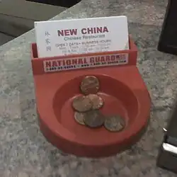 Маленькая чашка или поднос возле кассы предназначена для того, чтобы покупатели могли класть пенни, полученные в качестве сдачи, если они им не нужны. Другие клиенты, которым, например, нужен один цент для транзакции, могут взять одну из монет, чтобы не нуждаться в своей или не давать монету или купюру более высокого номинала. Лоток также может использоваться кассирами в целях эффективности: кассир может взять с лотка пенни (1 цент), а затем дать покупателю, например, четвертак (25 центов) вместо 24 центов (две монеты по 10 центов и четыре пенни — всего шесть монет).[1] Их также называют «пенни-пулами» и могут представлять собой либо обычный контейнер, например небольшую коробку, либо специально изготовленный контейнер, возможно, с рекламой или текстом, советующим покупателю «взять пенни, [или] оставить пенни».[2]
