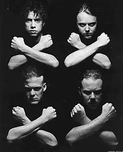 Metallica — пятый студийный альбом одноимённой американской метал-группы, выпущенный 12 августа 1991 года, также известный как The Black Album (с англ. — «Чёрный альбом»)[комм. 1]. Первый альбом группы, записанный с продюсером Бобом Роком (впоследствии его называли «человеком, принёсшим колоссальный успех группе Metallica»)[9], который пришёл на смену Флеммингу Расмуссену, занимавшемуся созданием трёх предыдущих дисков коллектива. Рок, до этого продюсировавший такие глэм-металлические команды, как Bon Jovi и Mötley Crüe, подталкивал группу к музыкальным экспериментам, за счёт чего звучание Metallica разительно отличалось от четырёх предыдущих альбомов — песни стали медленнее и короче[комм. 2]. Как отмечали эксперты, группа «сильно упростила свой звук»[9] (намекая, что это был уже не метал)[10][11], что вызвало острую полемику как в музыкальном сообществе, так и среди фанатов коллектива[12]. Многие начали обвинять группу в продажности[13][14].