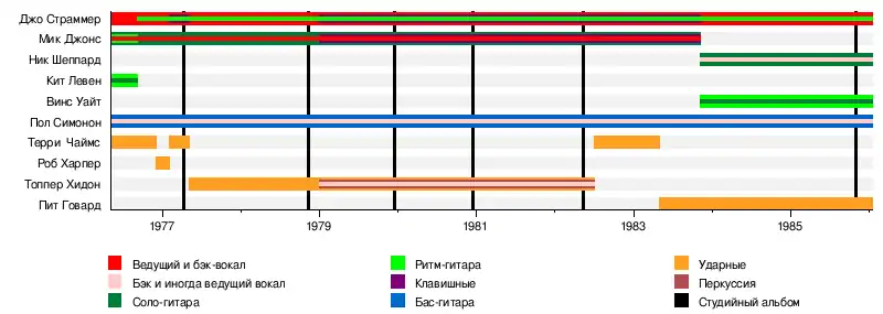 Джо Страммер Пол Симонон Мик Джонс Терри Чаймс Кит Левен Роб Харпер Топпер Хидон Пит Говард Ник Шеппард Винс Уайт |