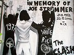 Для саморекламы Страммер написал красными буквами на здании центрального радио и BBC надпись размером с человеческий рост «White Riot»[18].