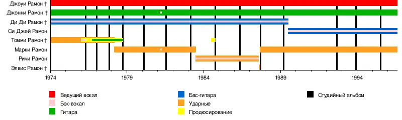 - Джонни Рамон (Джон Каммингс) — гитара (1974—1996; умер в 2004), бэк-вокал (1981);