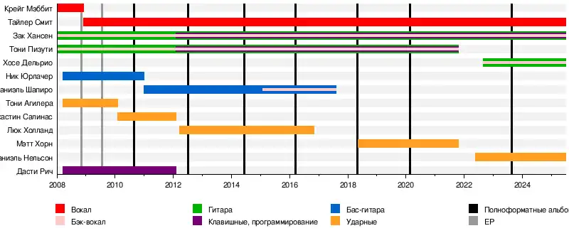 - Зак Хансен – гитара, бэк-вокал (2008–настоящее время), клавишные, программирование (2012–настоящее время)