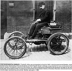 Фирма Thomas B. Jeffery Company была основана американским изобретателем и предпринимателем Томасом Б. Джеффри в городе Кеноша, штат Висконсин. Джеффри был владельцем второй по величине фабрики по производству велосипедов в США, расположенной в Чикаго. В конце XIX века, увлеченный идеей конструирования, он создал несколько прототипов мотоциклов и автомобилей. Его сын Чарльз в 1899-1901 годах также создал несколько автомобилей, причем в их конструкции присутствовало как минимум два радикальных нововведения — рулевое колесо и переднемоторная компоновка. Хотя данная конструкция заслужила хвалебные отзывы на первом Нью-йоркском автосалоне в 1900 году, его отец предпочёл строить автомобили с рычагом управления и расположением двигателя под сиденьем водителя. В том же году он продал свою компанию за 65 000 долларов и перебрался в Кеношу, где выкупил помещения бывшей велосипедной фабрики[1].