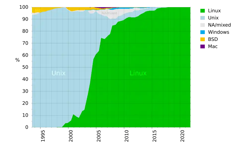 С ноября 2015 года в рейтинге больше нет ни одного суперкомпьютера под управлением операционной системы Windows. Также среди мощнейших суперкомпьютеров нет ни одной машины под управлением Mac OS. Большинство ЭВМ, до середины 2000-х годов было под управлением UNIX, а сейчас под управлением операционной системы Linux.