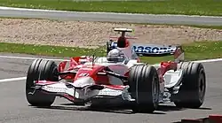 Ярно Трулли управляет Toyota TF107 на Гран-при Великобритании 2007 года.