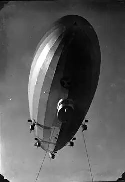 ![]() Швартовка дирижабля «Лос-Анджелес» на палубе авианосца «Саратога» 27 января 1928 года | |
