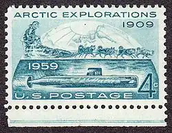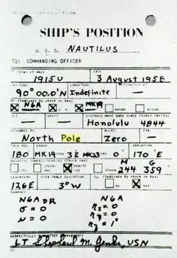 Запись в штурманском журнале: Nautilus, 90N, 19:15U, 3 августа 1958, Северный полюсМарка США, посвящённая походу