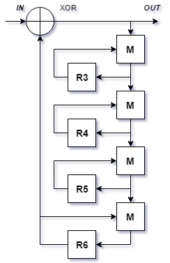 - Очередное слово ключевой последовательности определяется значением крайнего регистра: