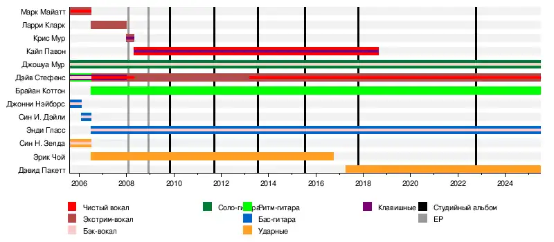 - Дэйв Стефенс — экстрим-вокал (2006-настоящее время), чистый вокал (2006-2008, 2013-настоящее время), ритм-гитара, бэк-вокал (2005-2006), клавишные (2005-2008)