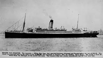 | 1909 | Лаурентик | ![]() | 14 892 брт | Корабль натолкнулся на мину и затонул 25 января 1917 года у берегов Ирландии. Из 475 пассажиров спасся 121 человек. |