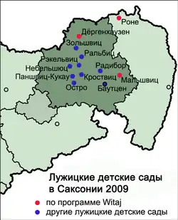 К 2009 году в Бранденбурге и Саксонии насчитывалось 5 детских садов, работающих по программе Witaj[1]: