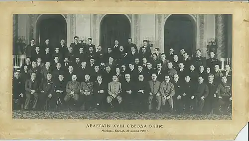 - ↑ XVIII съезд ВКП(б). 10-21 марта 1939 года: Стеногр. отчет. Л., 1939. С. 211.