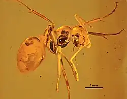 ![]() Муравей Yantaromyrmex geinitzi в янтаре | ||||||||