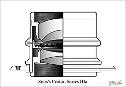 Оптическая схема, как правило, 4 линзы в 2 группах. Исключением является Protar Series IIa, где задняя группа — трёхлинзовая.