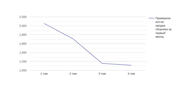 Ниже представлен график продаж сборников комикса за их первый месяц выпуска на территории Северной Америки.