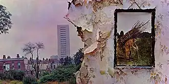 На лицевой обложке альбома изображена картина (висящая на стене с облупившимися обоями) со старым крестьянином, согнувшимся под тяжестью вязанки хвороста[116][148]. Этот персонаж, как отметил для себя Пейдж, имел явное сходство со «старым Джорджем Пикингиллом», который считался оккультным наставником Алистера Кроули[151]. Кроме того, обозреватель журнала Classic Rock Крис Сэйлвиц провел параллель между этим изображением и рисунком карты Таро «Десятка жезлов», означающей повышенные давление и ответственность, которые, «несомненно, воздействовали» на гитариста при работе над пластинкой[151]. Обратная сторона обложки являлась её продолжением — демонстрируя, что дом с картиной был частично разрушен при расчистке трущоб[120], а через него виднеются старомодные жилые кварталы ленточной застройки, над которыми возвышается муниципальная высотка — здание Солсбери-Тауэр (расположенное в бирмингемском районе Ледивуд[152]), по мнению Уолла, «определяющий символ современности в Британии ранних 1970-х»[148][153]. Слева от неё располагается небольшое здание из красного кирпича, на котором можно заметить плакат организации Оксфам, чей текст гласит: «Ежедневно кто-то умирает от голода»[151]. Картина неизвестного художника, датируемая XIX веком, была приобретена Плантом в одном из секонд-хендов Рединга[42][125][8][141][151]; впоследствии Пейдж объяснял выбор такой обложки желанием группы продемонстрировать дихотомию «город-деревня», ранее поднимавшуюся в песнях Led Zeppelin III[115], а также затронуть проблему экологии[комм. 23][151]: