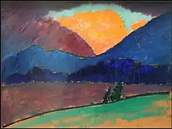 - ..we parted in 1914, when Kandinsky, being an enemy alien [because of the outbreak of World War 1. - he had a Russian nationality], had to flee from Germany to Switzerland, as did Jawlensky and Marianne von Werefkin too [Switzerland].. ..Ever since we parted in 1914, I have worked mainly by myself. After the First World War, here in Munich, we found that our Blue Rider group had broken up. Marc and Macke had both been killed [World War 1.], Kandinsky, Jawlensky and Marianne were no longer here..
