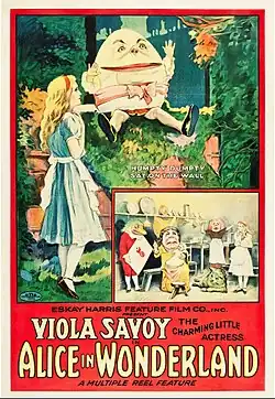 Alice in Wonderland is a 1915 silent film adaptation of Lewis Carroll's classic novel, Alice's Adventures in Wonderland. This film version is notable for depicting various stanzas of the 'Father William' poem and including footage resembling Tenniel's illustration of Father William doing his back-somersault at the front door. The film has ascended into the public domain.