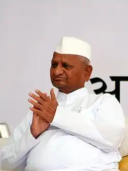 Kisan Baburao Hazare (Marathi: किसन बाबुराव हजारे) (born 15 January 1940), popularly known as Anna Hazare (Marathi: अण्णा हजारे), is an Indian social activist who is especially recognised for his contribution to the development of Ralegan Siddhi, a village in Parner taluka of Ahmednagar district, Maharashtra, India and his efforts for establishing it as a model village, for which he was awarded the Padma Bhushan—the third-highest civilian award—by the government of India in 1992. He is also notable for his demonstration against corruption in India during 2011 India against corruption movement.