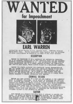 Earl Warren (19 March 1891 – 9 July 1974) was an American politician and jurist who served as 30th governor of California from 1943 to 1953 and as the 14th chief justice of the U.S. Supreme Court from 1953 to 1969. The "Warren Court" presided over a major shift in American constitutional jurisprudence, which has been recognized by many as a "Constitutional Revolution" in the liberal direction, with Warren writing the majority opinions in landmark cases such as Brown v. Board of Education (1954), Reynolds v. Sims (1964), Miranda v. Arizona (1966) and Loving v. Virginia (1967). Warren also led the Warren Commission, a presidential commission that investigated the 1963 assassination of President John F. Kennedy. He is the last chief justice to have served in an elected office before entering the Supreme Court, and is generally considered to be one of the most influential Supreme Court justices and political leaders in the history of the United States.