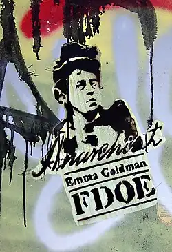 - Emma Goldman, legendary anarchist and advocate of women’s rights and sexual freedom...Born to a Jewish family in Lithuania, then part of the Russian Empire, she emigrated to the US, where she became known as "Red Emma." She was an electrifying public speaker and an extremely competent propagandist, who was arrested countless times for her activism and was described by FBI director J. Edgar Hoover as the "most dangerous woman in America"...She was eventually deported from the US because of her activities to Russia, where she joined the revolution, although she became critical of the Bolshevik state when they began repressing workers' strikes and protests. Later she travelled to Spain to aid in the fight against fascism during the Spanish civil war, and remained active until the end.
