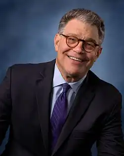 Alan Stuart "Al" Franken (born May 21, 1951) is an American writer, actor and politician. He was the junior United States Senator from Minnesota from 2008 to 2018, when he resigned following sexual harassment allegations from several women. He is a member of the Minnesota Democratic–Farmer–Labor Party, which affiliates with the national Democratic Party. Franken achieved note as a writer and performer for the television show Saturday Night Live from its conception in 1975 before moving to writing and acting in films and television shows. He then became a political commentator, author of five books and host of a nationally syndicated radio show on the Air America Radio network.