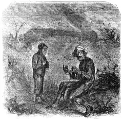 I give Pirrip as my father's family name, on the authority of his tombstone and my sister, — Mrs. Joe Gargery, who married the blacksmith. As I never saw my father or my mother, and never saw any likeness of either of them (for their days were long before the days of photographs), my first fancies regarding what they were like were unreasonably derived from their tombstones. The shape of the letters on my father's, gave me an odd idea that he was a square, stout, dark man, with curly black hair. From the character and turn of the inscription, "Also Georgiana Wife of the Above," I drew a childish conclusion that my mother was freckled and sickly.- Ch. 1