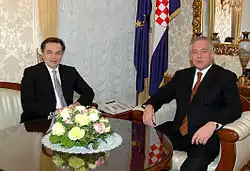 Haris Silajdžić (born 1 October 1945) is a Bosnian politician and academic who served as the 5th Bosniak member of the Presidency of Bosnia and Herzegovina from 2006 to 2010. He was the 3rd Prime Minister of the Republic of Bosnia and Herzegovina from 1993 to 1996.