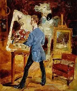 - In Paris [Summer of 1881].. ..Lautrec found 'with wild joy' his [older] friend Princeteau. The affection linking the sixteen-year-old cripple to the deaf-mute of thirty-seven was stronger than ever. Their respective infirmities served to increase their friendship, They saw each other every day. Lautrec called Princeteau his 'master'; Princeteau called Lautrec his 'studio foster-child.' Indeed, Lautrec imitated him 'like a monkey.' He copied his methods, his brushwork and his technique which had both solidity and fluency and was much concerned with the management of light.