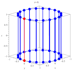 - One way to deal with the matters... is to work with a set of numerical values. I can do this with the help of Ball's Cartesian equation for the hyperboloids of reguli of the 3-system (1900). This equation is quoted and proved by Hunt (1978)... I shall choose the three principle screws of a 3-system of motion... I have, (a) accorded with convention, (b) ensured that the pitch quadric will be real... Ball's equation... clearly represents a series of concentric quadric surfaces... This circumstance of there being none of the concentric hyperboloids coaxial with one of the principal axes is a characteristic of the 3-system. ...within a certain, central zone of the system, the intersections among the hyperboloids are complicated and not easy to understand. Outside that zone, however... the hyperboloids appear in relation to one another... Each successive hyperboloid is wholly 'outside' its predecessor (or wholly 'inside' as the case may be), and no intersections are apparent. ...outside a certain, central zone, only one real screw can be found to pass through a generall chosen point...