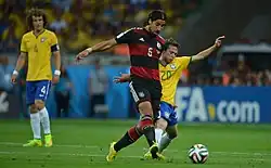- Here's Toni Kroos. Sami Khedira. Now Müller. Free kick's going to be given Brazil's way; this is turbocharged.