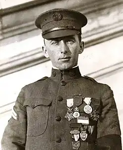 - At last General Pershing finished his speech and climbed down from his platform. He came straight toward Lieutenant Hays. I kept my eyes glued to the front, but I knew what he was doing. He stopped before the lieutenant, plopped his heels, and did something with his hands. I heard him speak to the lieutenant. Then he was standing in front of me. He saluted, and I almost snapped my right arm off in answering. But I did it automatically. My head had about quit functioning. The general stepped up close to me, did something with the front of my blouse- and a pin went straight through the blouse into the flesh on my chest! He shook hands with me and congratulated me, and said something about a "fellow Missourian." Then he knocked his heels together, gave a low, snappy salute, sidestepped to the right, and began decorating the next fellow.