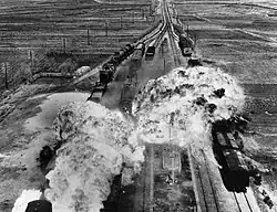 The enemy's air (power) would first have been taken out. I would have dropped between 30 and 50 atomic bombs on his air bases and other depots strung across the neck of Manchuria from just across the Yalu River from Antung (northwestern tip of Korea) to the neighborhood of Hunchun (just north of the northeastern tip of Korea near the border of the U.S.S.R.). - Between 30 and 50 atomic bombs would have more than done the job. Dropped under cover of darkness they would have destroyed the enemy's air force on the ground, wiped out his maintenance and his airmen. His only means of rebuilding would have been over the singletrack Trans‐Siberian Railroad. It is an excellently run railroad but it could not have handled the material needed to rebuild the enemy's air force in a sufficient space of time.