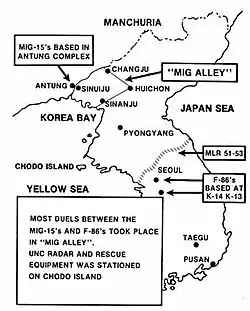 The bomber crew’s reports sparked an organized panic that sizzled through the U.S. chain of command. Although the airmen’s description of the intruder matched no aircraft known to be operating in the theater, U.S. intelligence officials quickly made an educated assumption. The attacking aircraft was a MiG-15, most likely flying from a base in Manchuria. Before the incident, analysts believed that the only use Stalin had authorized for MiGs supporting communist China’s air force was protecting Shanghai from attack by nationalist Chinese bombers. The MiG was an ominous sign: China’s involvement in Korea was increasing, and Soviet technology was spreading.- Stephen Joiner, “The Jet that Shocked the West”, Air & Space Magazine, (December 2013).