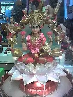 - During [Durga Puja]...very frequently, small images of Lakshmi, Saraswati, Kartikeya and Ganesha are also placed by the side of the goddess [Durga]. At the close of the festival, these images are immersed into the river.