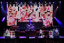 Maroon 5 is an American pop rock band that originated in Los Angeles, California. It currently consists of lead vocalist Adam Levine, keyboardist and rhythm guitarist Jesse Carmichael, bassist Mickey Madden, lead guitarist James Valentine, drummer Matt Flynn and keyboardist PJ Morton.