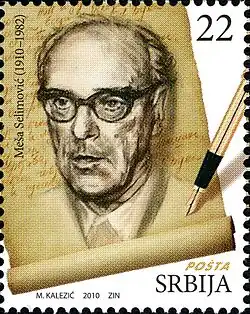 Meša Selimović (26 April 1910 – 11 July 1982) was a Yugoslav writer. His novel Death and the Dervish is one of the most important literary works in post-World War II Yugoslavia. Some of the main themes in his works are the relations between individuality and authority, life and death, and other existential problems.