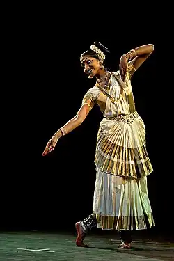 Mohiniyattam, also spelled Mohiniattam (Malayalam: മോഹിനിയാട്ടം), is a classical dance form, a dance form of the women of Kerala. Believed to have originated in 16th century CE, it is one of the eight Indian classical dance forms recognised by the Sangeet Natak Akademi. It is considered a very graceful form of dance meant to be performed as solo recitals by women. The vocal music of Mohiniyattam involves variations in rhythmic structure known as chollu. The lyrics are in Manipravalam, a mixture of Sanskrit.