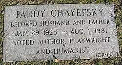 Sidney Aaron "Paddy" Chayefsky (29 January 1923 – 1 August 1981) was an American playwright, screenwriter and novelist. He is the only person to have won three solo Academy Awards for writing both adapted and original screenplays.