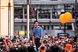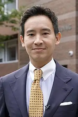 Pita Limjaroenrat (Thai: พิธา ลิ้มเจริญรัตน์, RTGS: Phitha Limcharoenrat, pronounced [pʰí(ʔ).tʰāː lím.tɕā.rɤ̄ːn.rát] ⓘ; born 5 September 1980), nicknamed Tim (Thai: ทิม), is a Thai businessman and politician. A member of the House of Representatives, he previously served as Leader of the Move Forward Party, the de facto successor to the dissolved Future Forward Party, from 2020 to 2023. He led Move Forward to become the largest party in the 2023 general election, winning 151 seats, but resigned as leader of the party in September 2023. He continued to be active in the party, and was reinstated as an MP in January 2024 after a brief suspension from parliamentary duties. After the Move Forward Party was dissolved in August 2024, Pita was banned from politics for 10 years, and he began a fellowship at Harvard University.