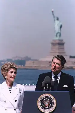 - Hillary and I will always remember President Ronald Reagan for the way he personified the indomitable optimism of the American people, and for keeping America at the forefront of the fight for freedom for people everywhere. It is fitting that a piece of the Berlin Wall adorns the Ronald Reagan Building in Washington.