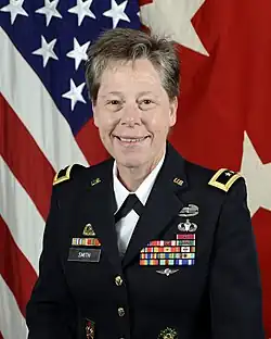 Tammy Smith (born 1963) is a Brigadier General of the U.S. Army Reserve. Smith was nominated to the Brigadier General position on 10 May 2012, and was formally promoted to the position in a private ceremony at the Women’s Memorial at Arlington National Cemetery. She currently serves as deputy chief in the Army Reserve Office of the Chief, and served for a year in the Afghanistan War.