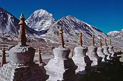 - [A]t least in Eastern Tibet, there existed during and after the time of Lha-tho-tho-ri [Fl.173(?)-300(?) CE] a solid knowledge of Buddhism and that the upper classes of the people were faithfully devoted to it. But the border regions in the north and west probably had also come into contact with Buddhism long before the time of Srong-btsan-sgam-po. Buddhist teachings reached China via a route along the western and northern borders of the Tibetan culture and language zone; the same route was travelled by Indian Pandits and Chinese pilgrims in their endeavour to bring this Indian religion to China. There used to be contacts with the Tibetan population in these border regions. It is possible that the knowledge gained from these encounters was spread by merchants over large areas of Tibet. Thus, when Srong-btsan-sgam-po succeeded to the throne of Tibet in the year 627, the country was ready for a systematic missionary drive under royal patronage.