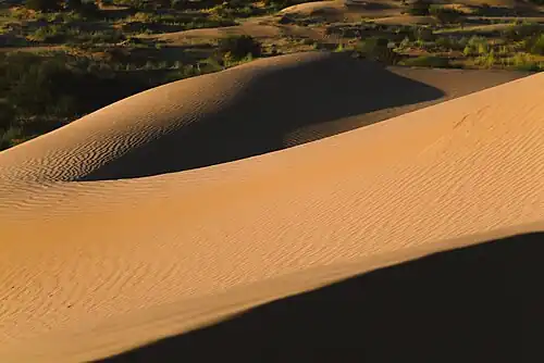 Барха́н, барха́ны — песчаные холмы в пустынях и полупустынях, более крупная разновидность дюн. Некоторые барханы могут достигать высоты 100 метров. В разрезе часто напоминают подкову или серп, имеют длинный и пологий наветренный склон и короткий крутой подветренный.